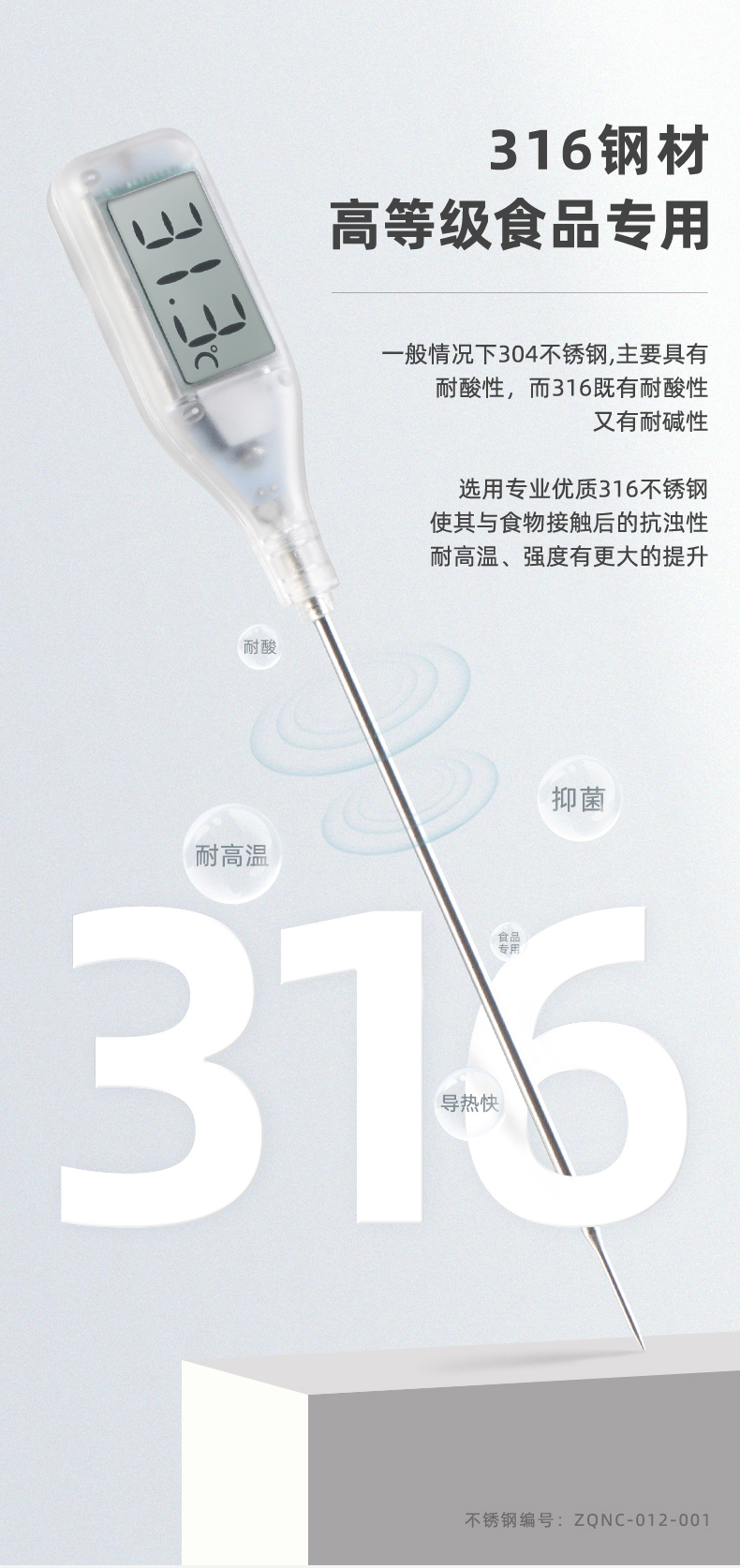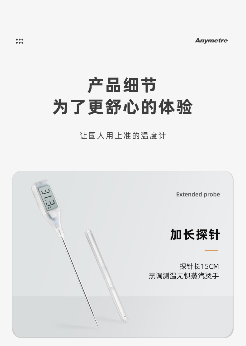 测试各种液体温度,食品中心温度。