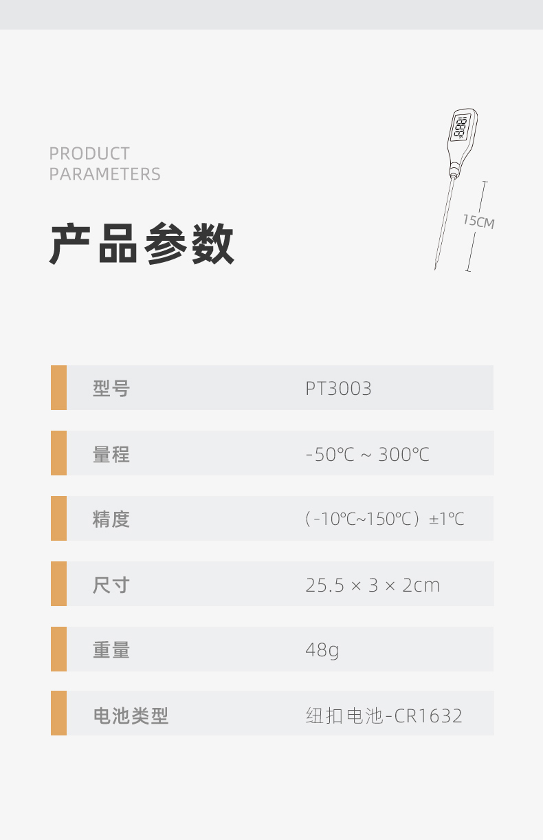 产品尺寸:全长25.5cm,探针15cm