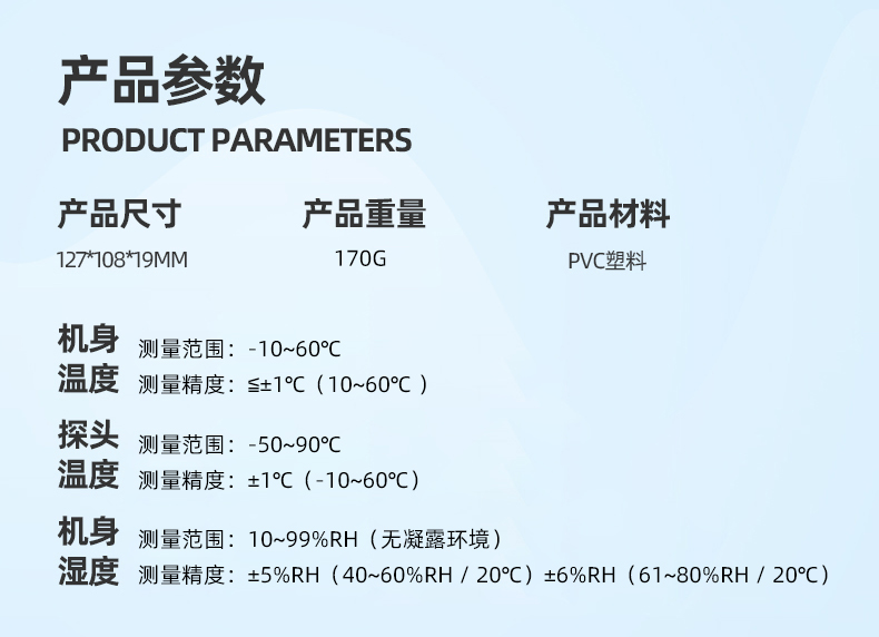 温度:0.1℃,湿度:1%RH